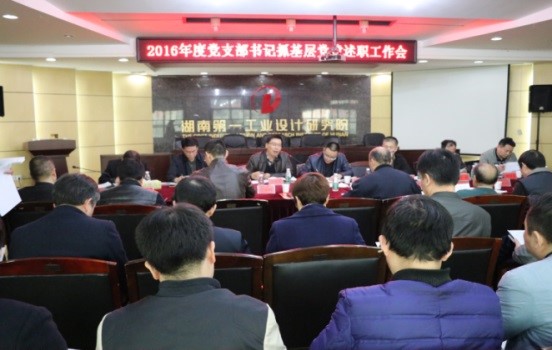 2017年3月2日下午,院党委在办公楼八楼会议室召开了2016年党支部书记抓基层党建工作述职评议会。院党委委员、纪委委员、院属各党支部书记、支部委员、院中层以上干部参加会议。会议由院党委书记、院长李超群主持,省国资委党建工作处(党委组织部)副处长彭坚中到会指导。