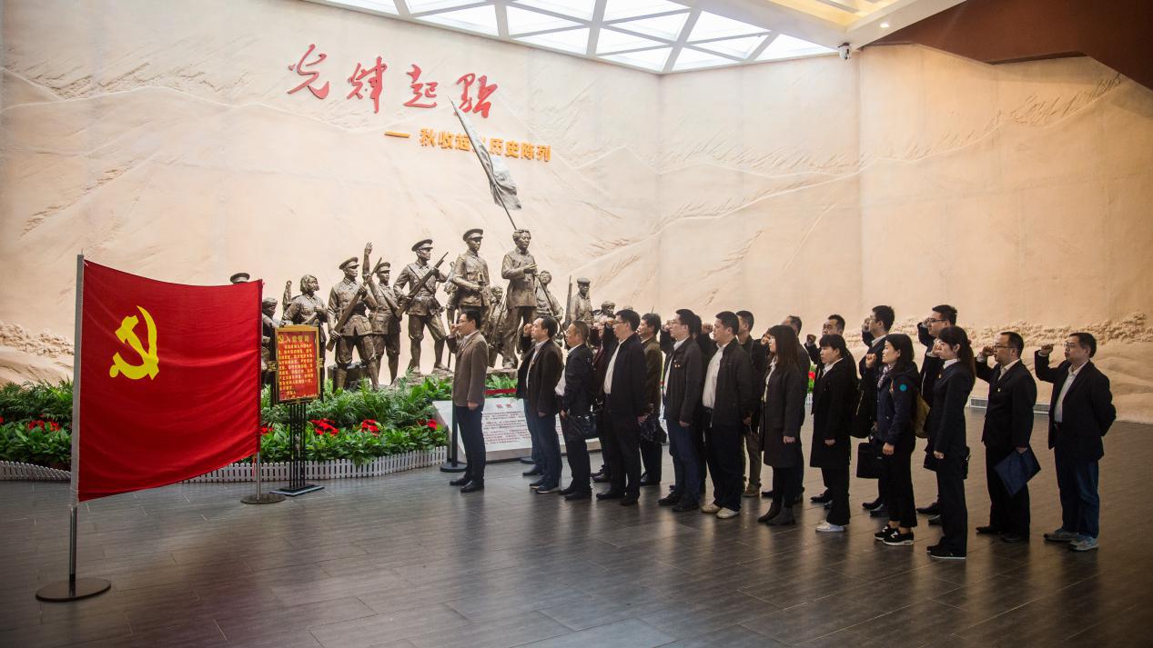 在秋收起义文家市会师纪念馆大厅,全体党员面对党旗庄严宣誓,重温入党誓词,进一步了坚定共产党人的初心和使命;随后,全体党员先后参观了各个展厅,通过观看实物陈列、历史档案照片,拉近了与秋收起义武装斗争的时空距离,对起义的背景、工农革命军第一军第一师的组建有了更深刻的认识。老一辈无产阶级革命家毛泽东、罗荣桓、卢德铭、何长工等留下的战斗足迹和数万名英雄儿女为革命献出了宝贵生命的伟大壮举,更让大家深刻体会到革命先烈为了人民的幸福,勇于投身革命,不畏牺牲的英勇献身精神以及他们在战争年代坚强不屈、坚韧不拔的艰苦奋斗精神。